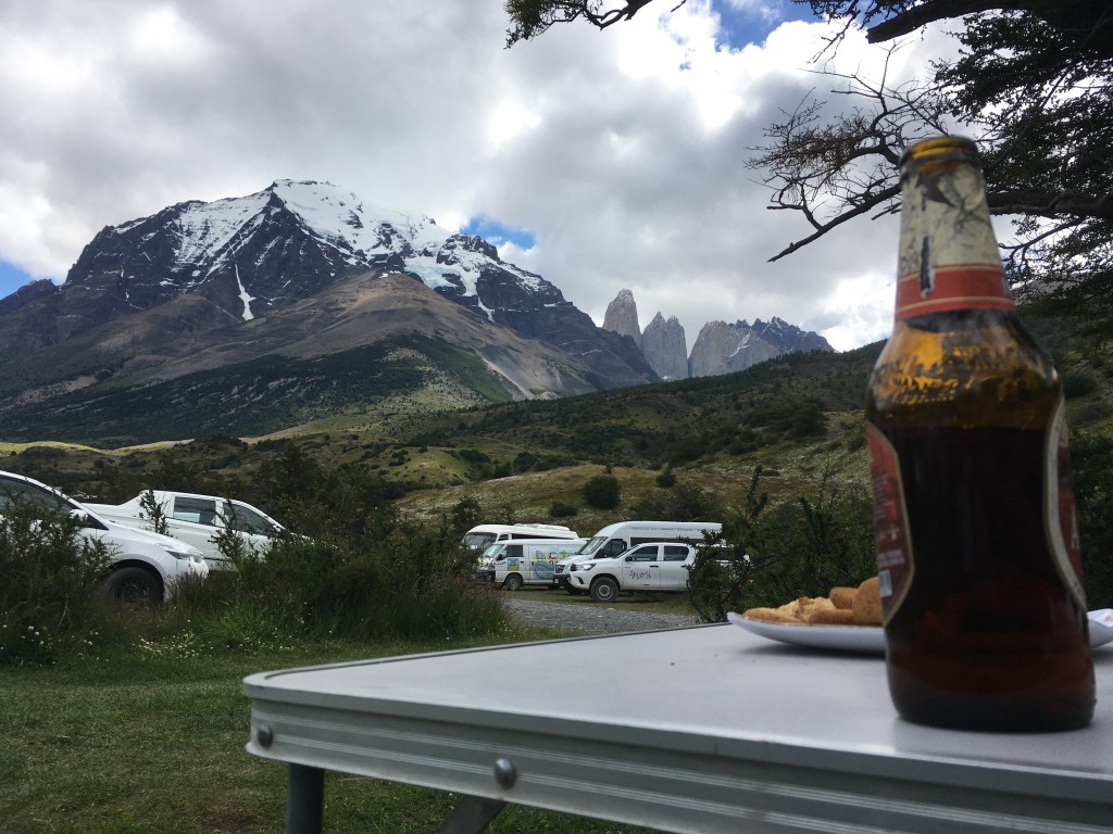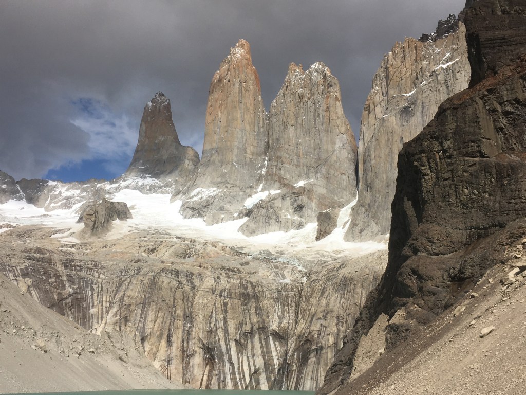 We had great weather coming in. Camped at the base of the Torres Del Paine climb, great view.