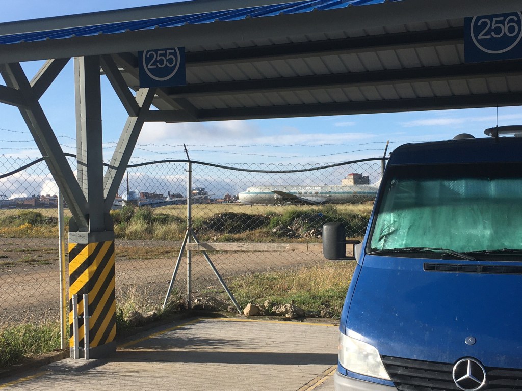I managed to pull into this town without driving right through the market. Fun thing about this place, we are going to “camp” at the airport!