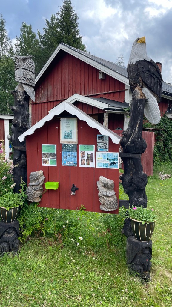 In Klimpfjäll, the first stop was at Norgefarargården, which I am guessing was just an old house. But for us, that means coffee, cake, and a Loppis! I guess we haven’t told you about Loppis’s yet.