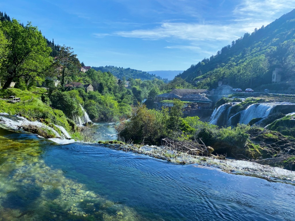 And off we go. Mountain curvy road and we make it to Stolac, to a little campsite on a river with a lot of waterfalls.