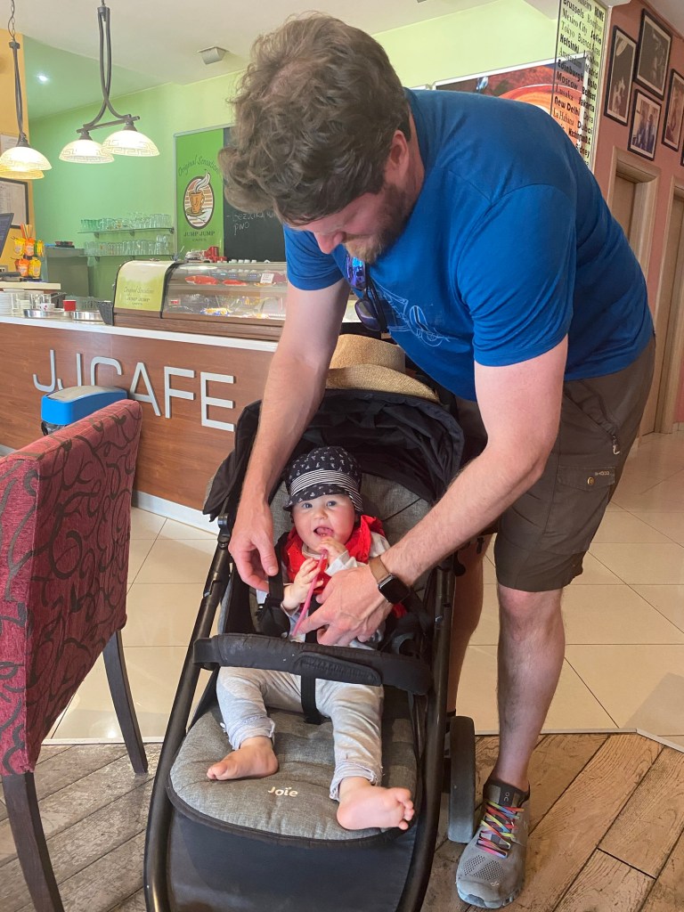 Surprise surprise, it also has an old town. We eat at a restaurant where all the employees stop to play with Freya and give her a balloon.