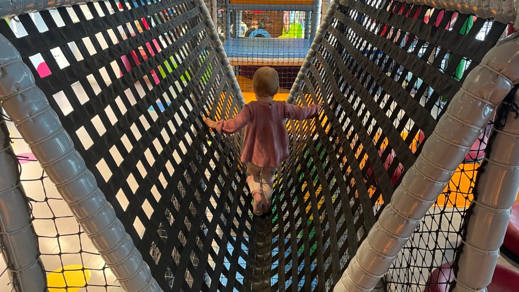 As always indoor playgrounds are the best to pass time. Freya gets fries and I get a beer.