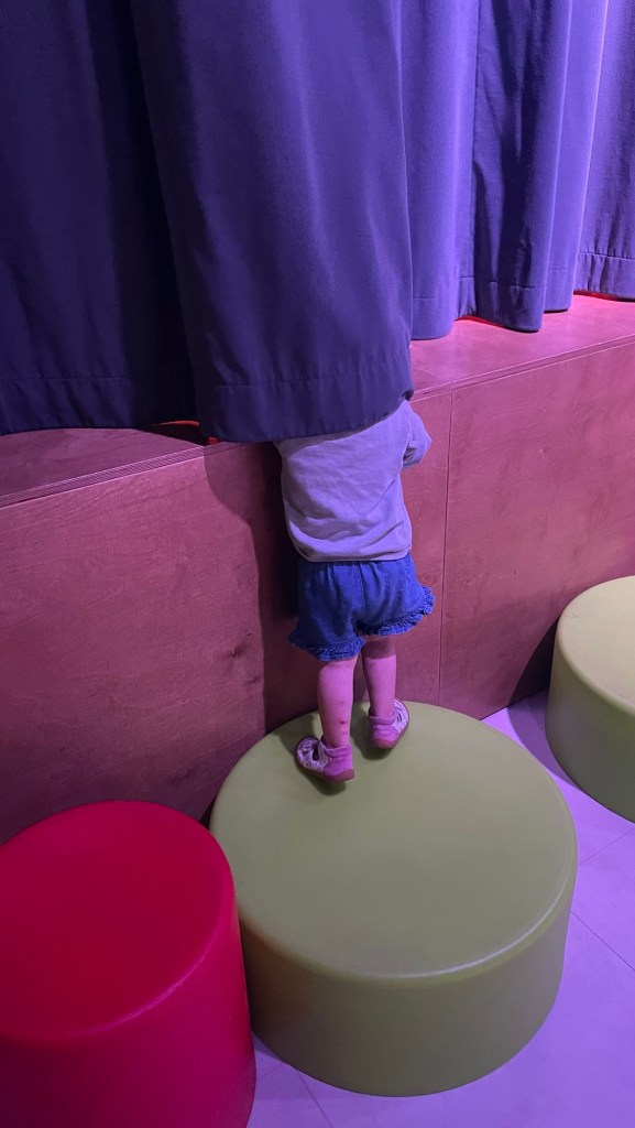 Freya is getting better at going to the playgrounds on her own while we sit nearby. Trampolines keep her occupied for a while. These things are brutal on adults.